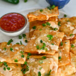These Viral Wonton Nachos are packed with bold flavor thanks to a creamy mixture of cream cheese, soy sauce, hoisin, toasted sesame oil, chili crisp, scallions, and spicy peppers. Each wonton gets stuffed, sealed, and fried until perfectly golden and crispy.